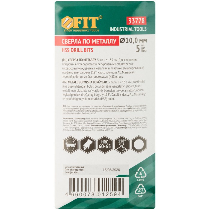 Сверла по металлу HSS полированные 10,0 мм (5 шт.) (33778)