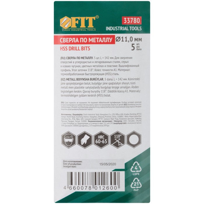 Сверла по металлу HSS полированные 11,0 мм (5 шт.) (33780)