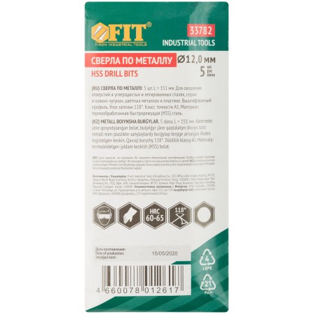 Сверла по металлу HSS полированные 12,0 мм (5 шт.) (33782)