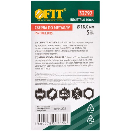 Сверла по металлу HSS полированные 18,0 мм (5 шт.) (33792)