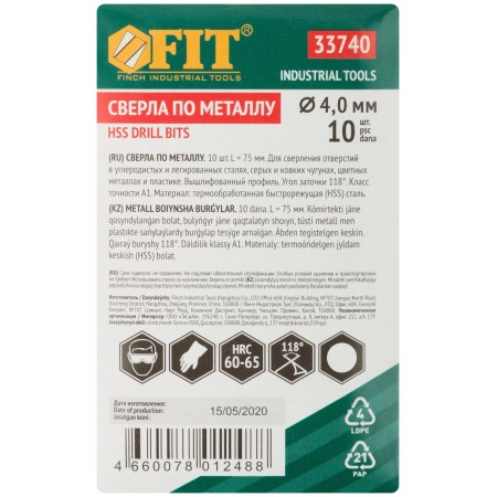 Сверла по металлу HSS полированные 4,0 мм (10 шт.) (33740)