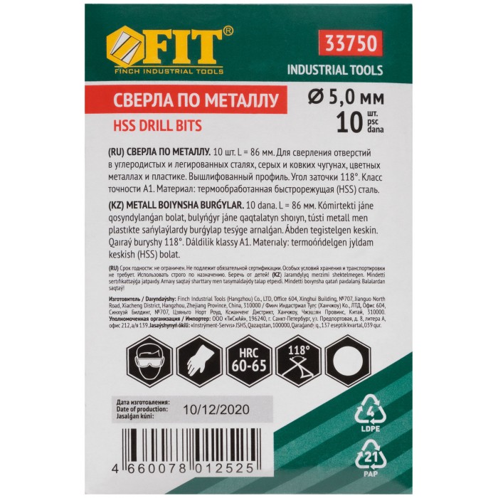Сверла по металлу HSS полированные 5,0 мм (10 шт.) (33750)