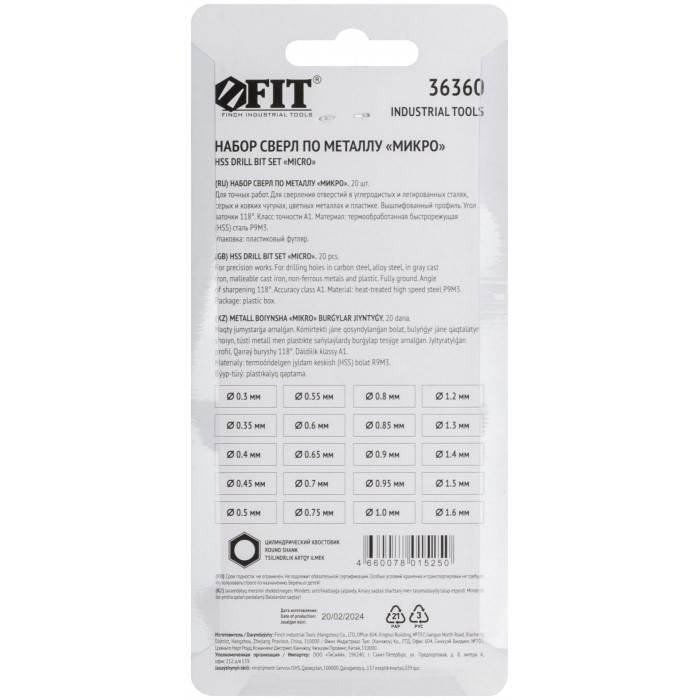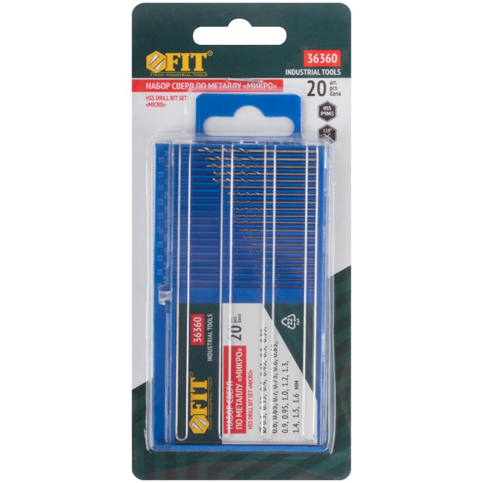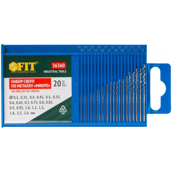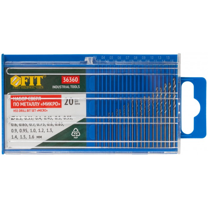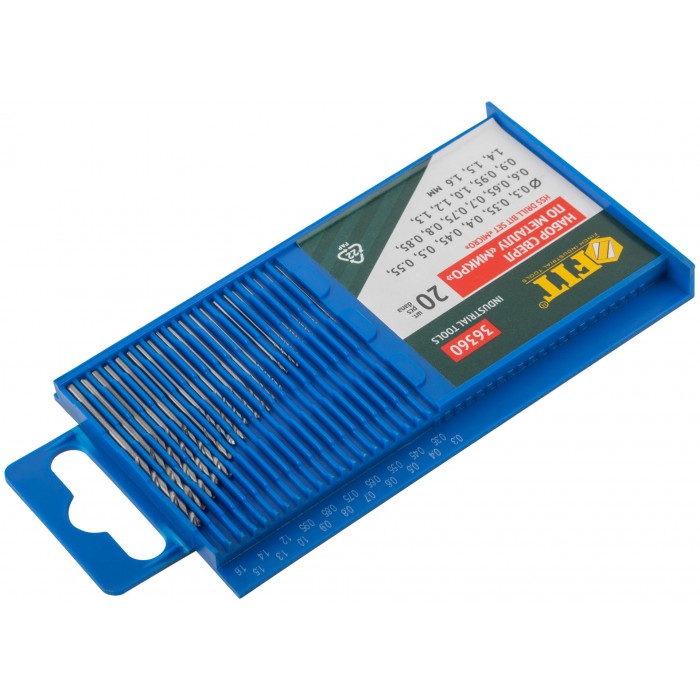 Сверла по металлу HSS полированные "микро" набор 20 шт. (0,3-1,6 мм) (36360)