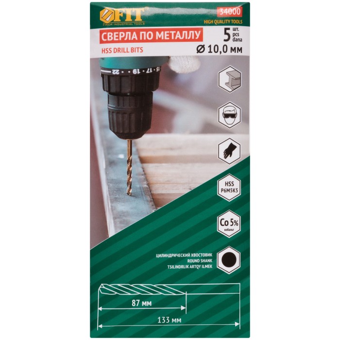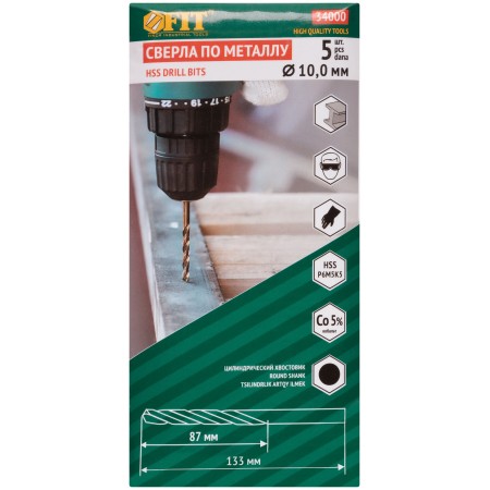 Сверла по металлу HSS с добавкой кобальта 5% Профи 10,0 мм ( 5 шт.) (34000)