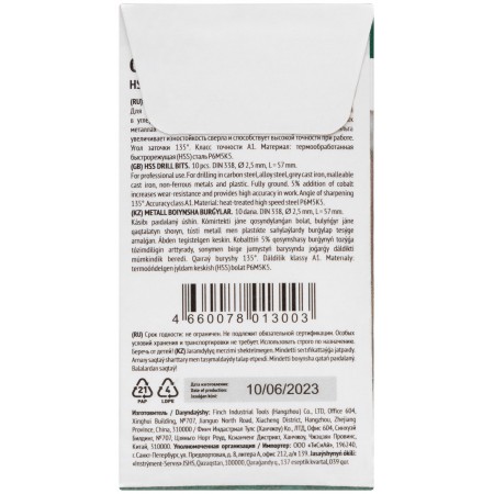 Профи. DIN338. С 5% добавкой кобальта. Для профессионального использования. Класс точности А1. Угол заточки 135 градусов. Цилиндрический хвостовик. Вышлифованный профиль. Износостойкие. Материал: быстрорежущая (HSS) сталь Р6М5К5. Упаковка: картонный конверт.