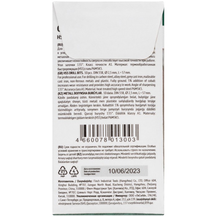 Сверла по металлу HSS с добавкой кобальта 5% Профи 2,5 мм (10 шт.) (33925)