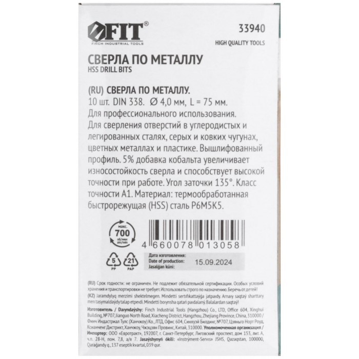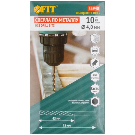 Сверла по металлу HSS с добавкой кобальта 5% Профи 4,0 мм (10 шт.) (33940)