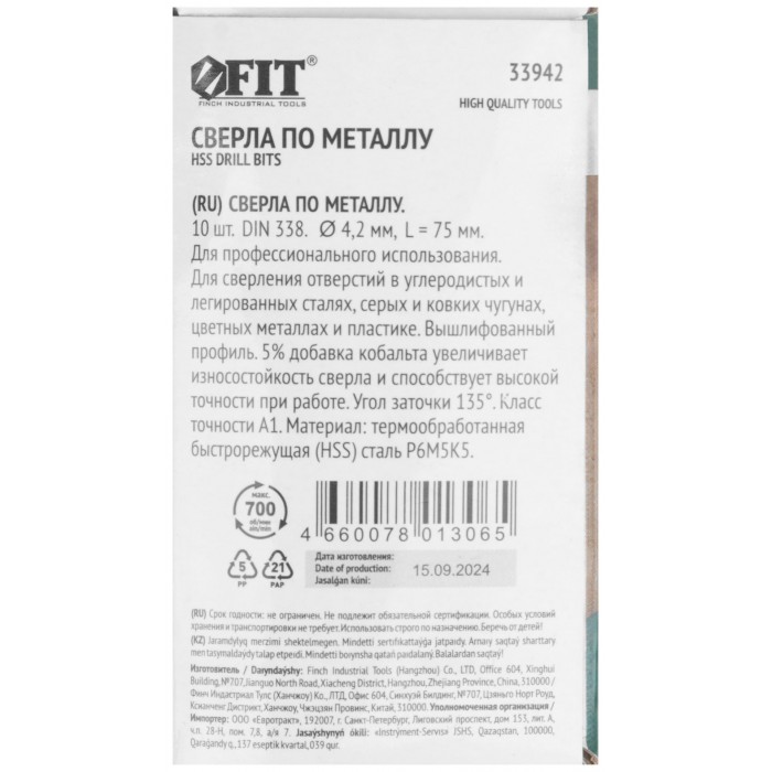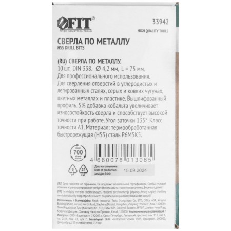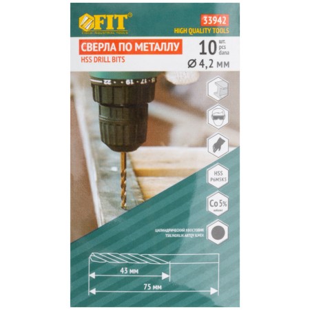 Сверла по металлу HSS с добавкой кобальта 5% Профи 4,2 мм (10 шт.) (33942)