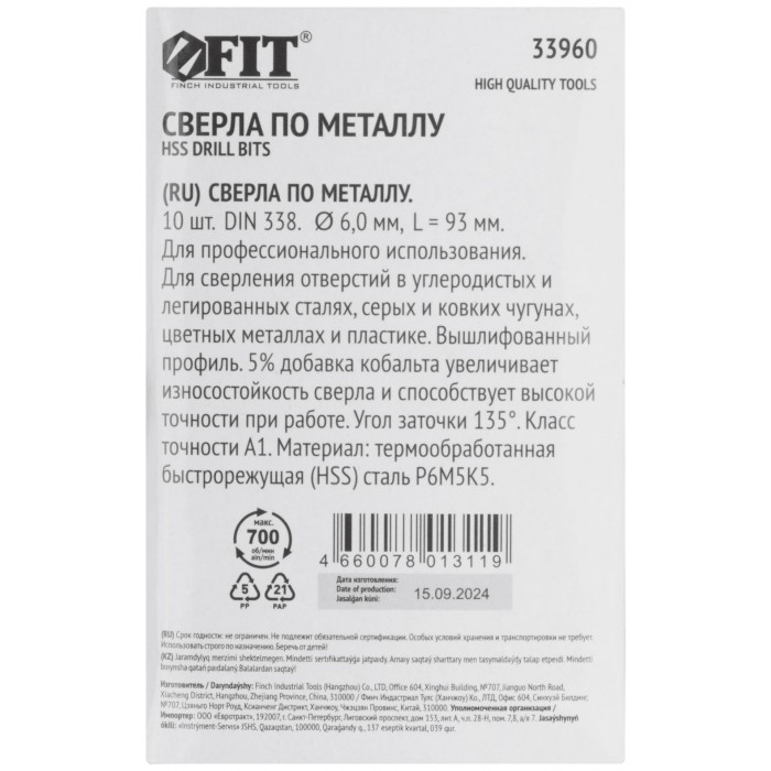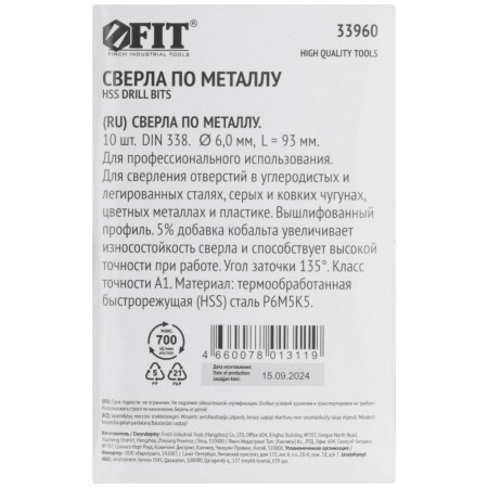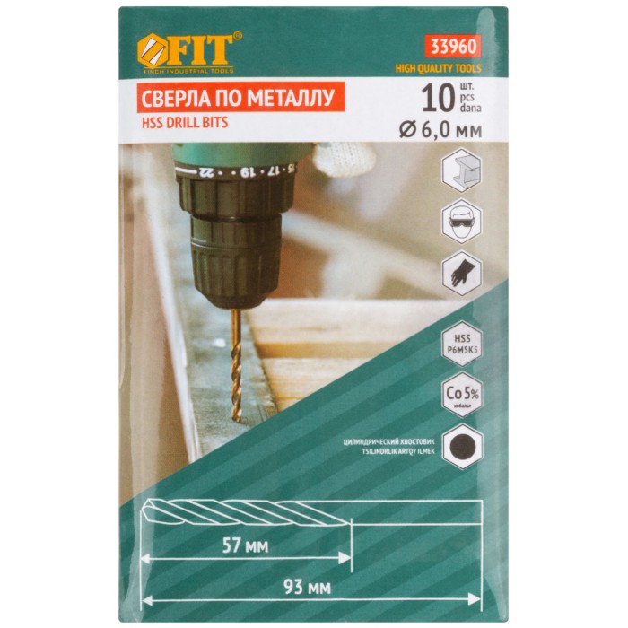 Сверла по металлу HSS с добавкой кобальта 5% Профи 6,0 мм (10 шт.) (33960)