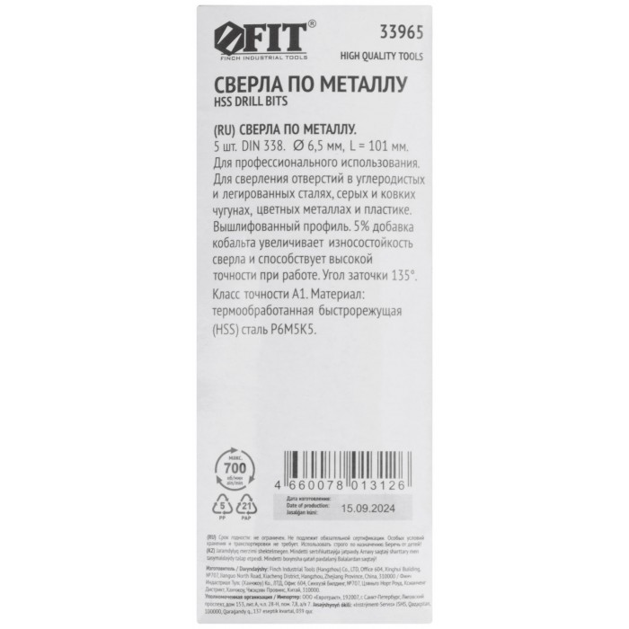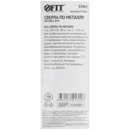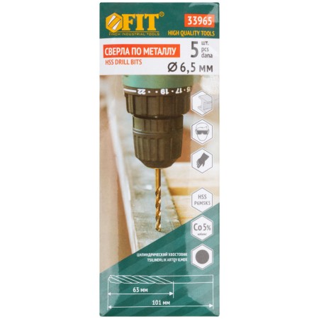 Сверла по металлу HSS с добавкой кобальта 5% Профи 6,5 мм ( 5 шт.) (33965)