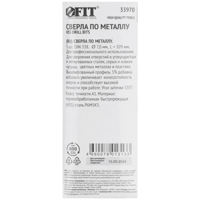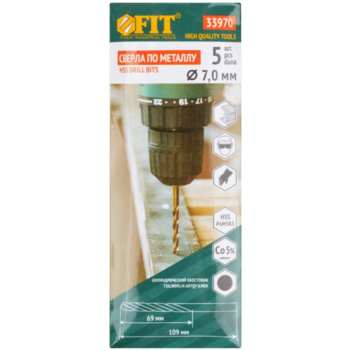 Сверла по металлу HSS с добавкой кобальта 5% Профи 7,0 мм ( 5 шт.) (33970)