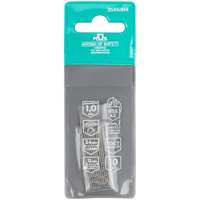 Сверла по металлу HSS шлифованные, угол заточки 135°, 1 x 34 мм (10 шт.) (35668М)
