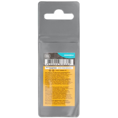 DIN338. Цилиндрический хвостовик.Изготовленно методом полной вышлифовки. Угол заточки 135°. Твердость: 61-64HRC. Материал: быстрорежущая сталь с повышенным содержанием вольфрама, молибдена и ванадия. Упаковка: пакет с подвесом.