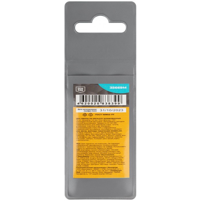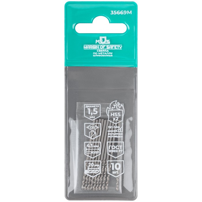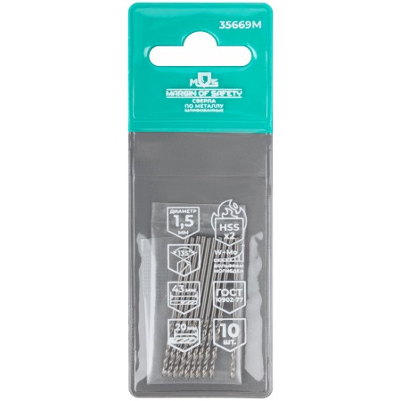 Сверла по металлу HSS шлифованные, угол заточки 135°, 1,5 x 43 мм (10 шт.) (35669М)