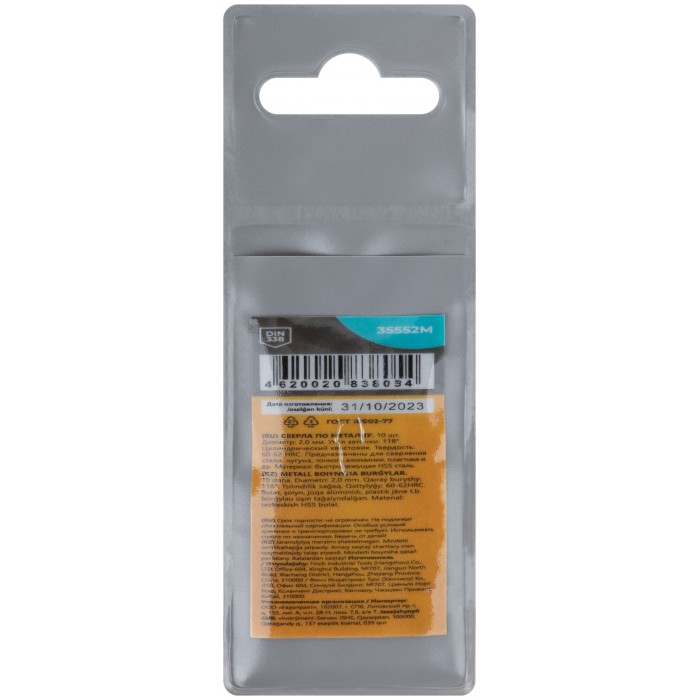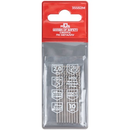 Сверла по металлу HSS, угол заточки 118°, 2,0 x 49 мм, (10 шт.) (35552М)