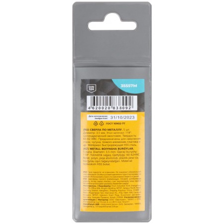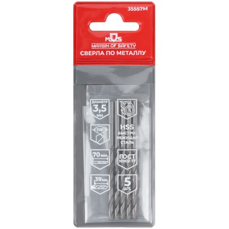 Сверла по металлу HSS, угол заточки 118°, 3,5 x 70 мм, (5 шт.) (35557М)