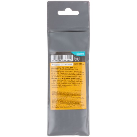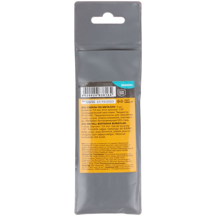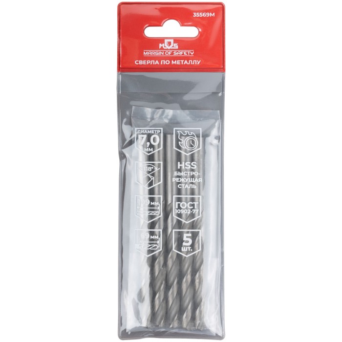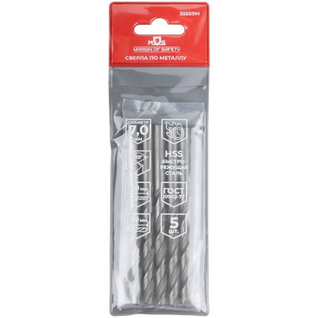 Сверла по металлу HSS, угол заточки 118°, 7,0 x 109 мм, (5 шт.) (35569М)