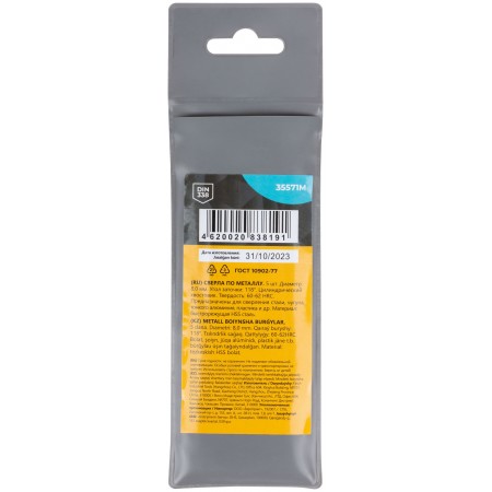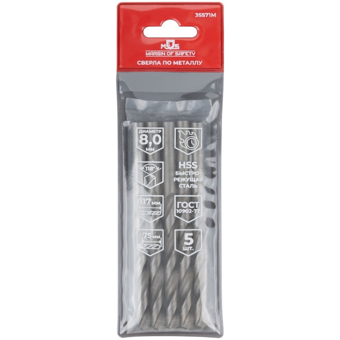 Сверла по металлу HSS, угол заточки 118°, 8,0 x 117 мм, (5 шт.) (35571М)