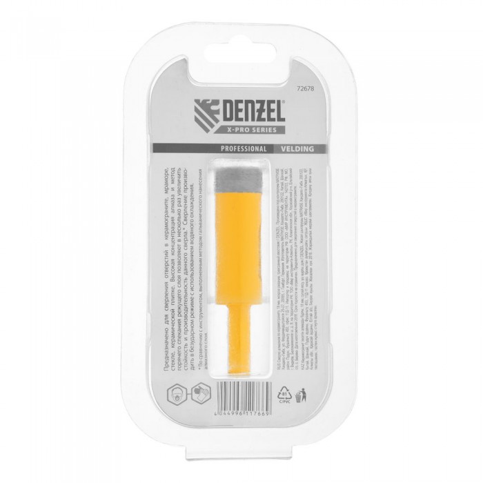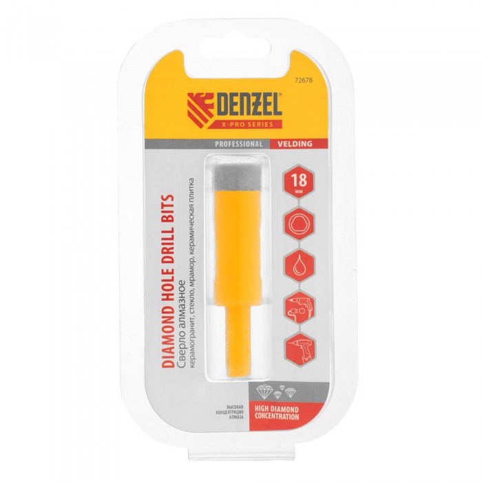 Сверло алмазное по керамограниту, 18 мм, мокрая резка, трехгранный хвостовик Denzel (72678)