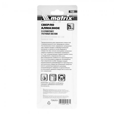 Сверло алмазное по керамограниту, 25 х 67 мм, трехгранный хвостовик Matrix (726253)