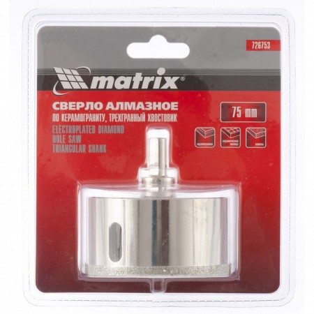 Сверло алмазное по керамограниту, 75 х 67 мм, трехгранный хвостовик Matrix (726753)