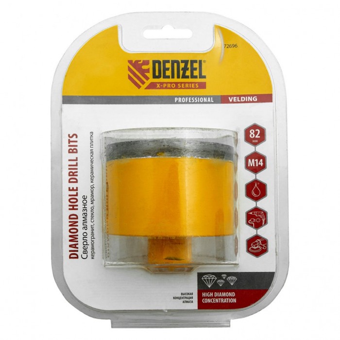 Сверло алмазное по керамограниту, 82 мм, мокрая резка, М14 Denzel (72696)