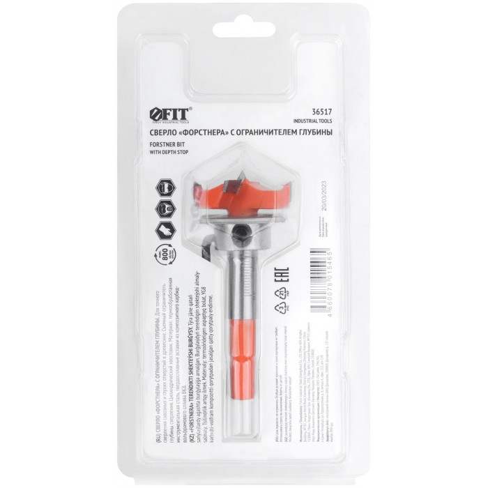 Сверло Форстнера (фреза) с карбидными вставками и ограничителем глубины 35 мм (36517)