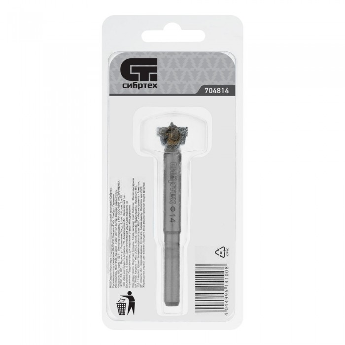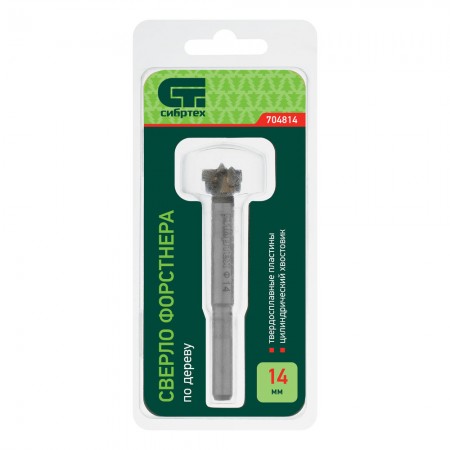 Сверло Форстнера по дереву, 14 мм, цилиндрический хвостовик Сибртех