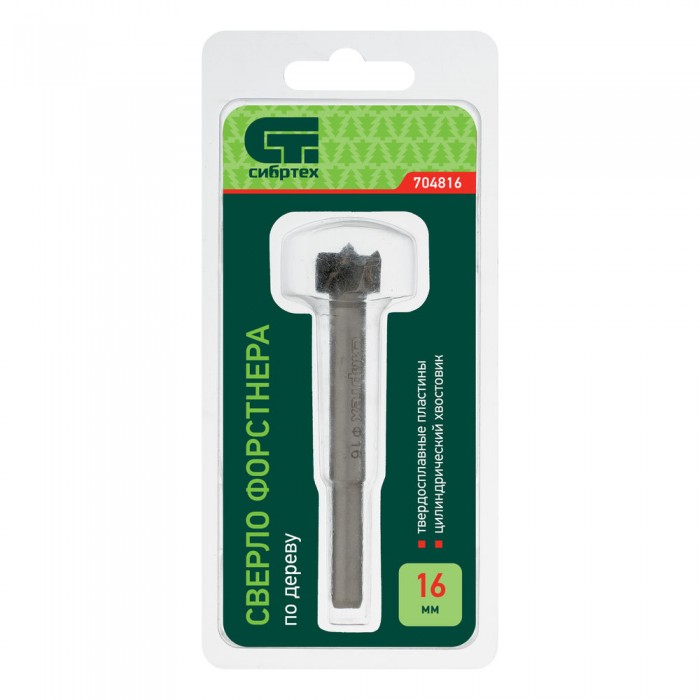 Сверло Форстнера по дереву, 16 мм, цилиндрический хвостовик Сибртех