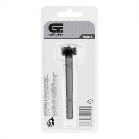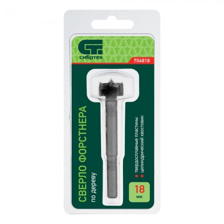 Сверло Форстнера по дереву, 18 мм, цилиндрический хвостовик Сибртех (704818)