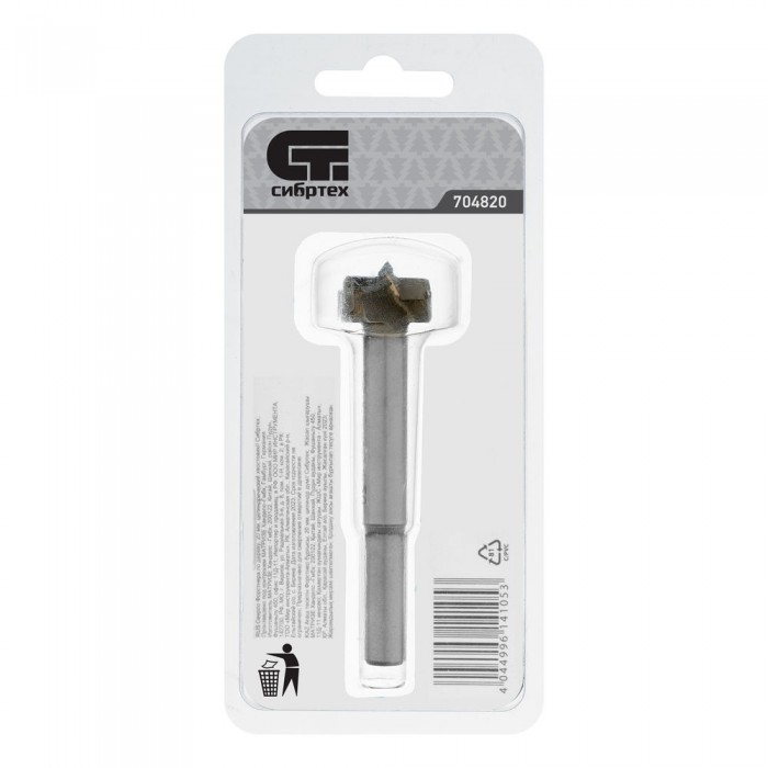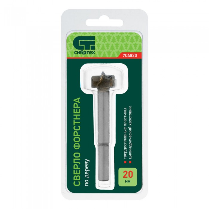 Сверло Форстнера по дереву, 20 мм, цилиндрический хвостовик Сибртех (704820)