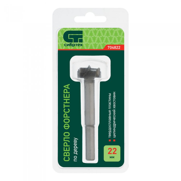 Сверло Форстнера по дереву, 22 мм, цилиндрический хвостовик Сибртех
