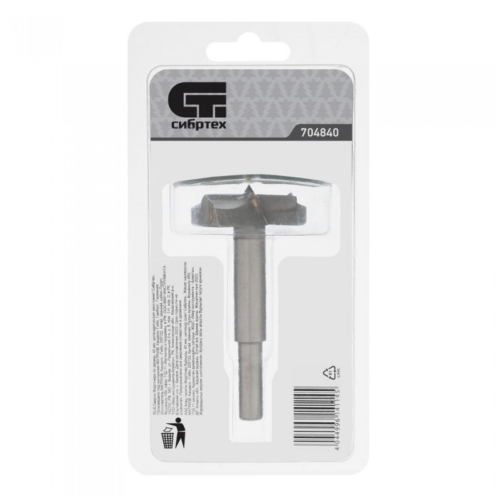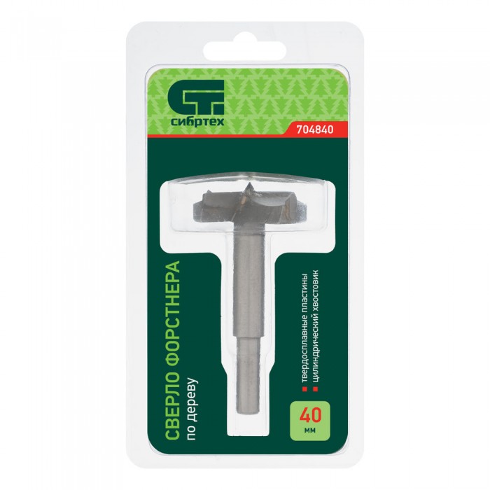 Сверло Форстнера по дереву, 40 мм, цилиндрический хвостовик Сибртех (704840)