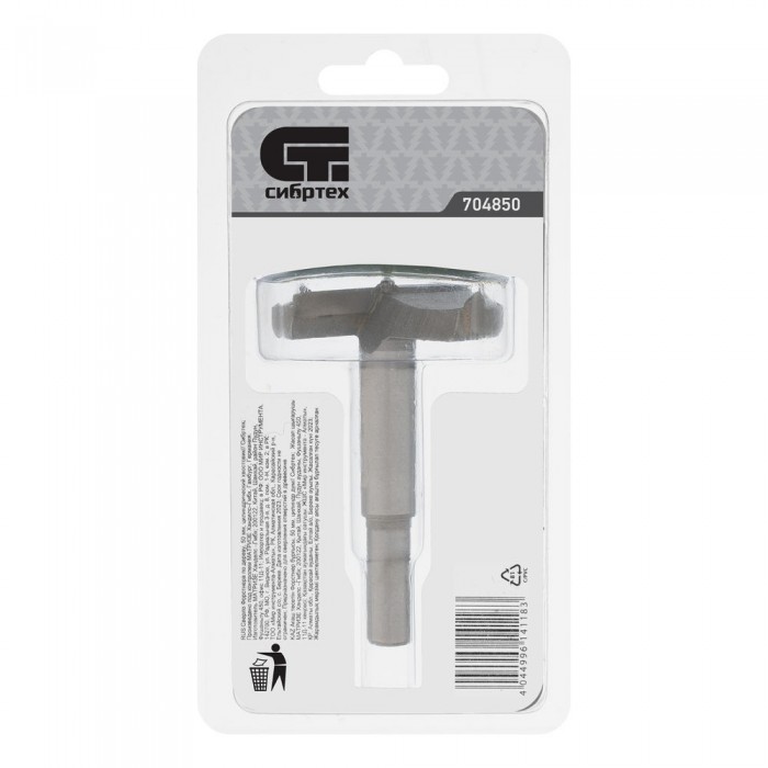Сверло Форстнера по дереву, 50 мм, цилиндрический хвостовик Сибртех