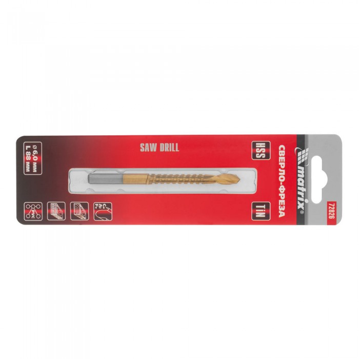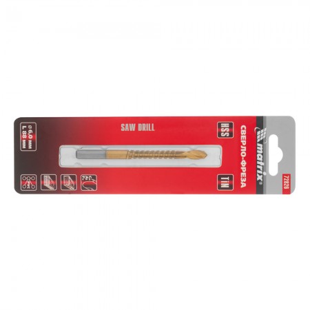 Сверло-фреза, 6 мм, универсальное, нитридтитановое покрытие, цилиндрический хвостовик Matrix (72826)