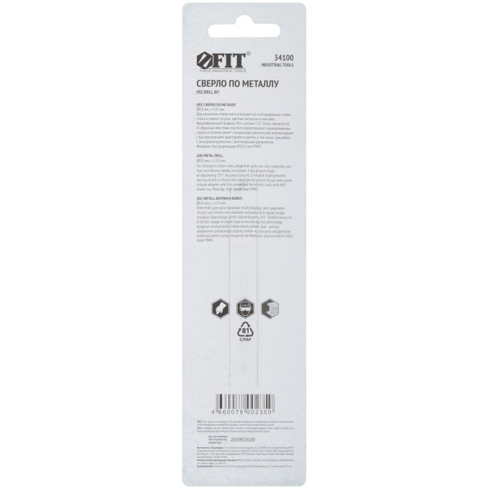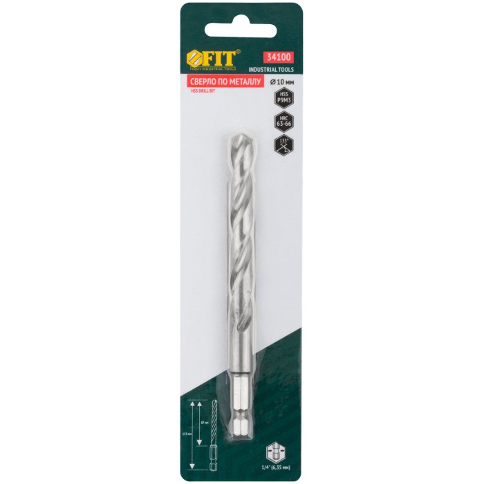 Сверло HSS по металлу,полированное, U-хвостовик под биту, инд.упаковка 10,0х133 мм (34100)