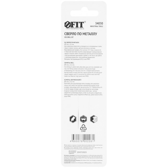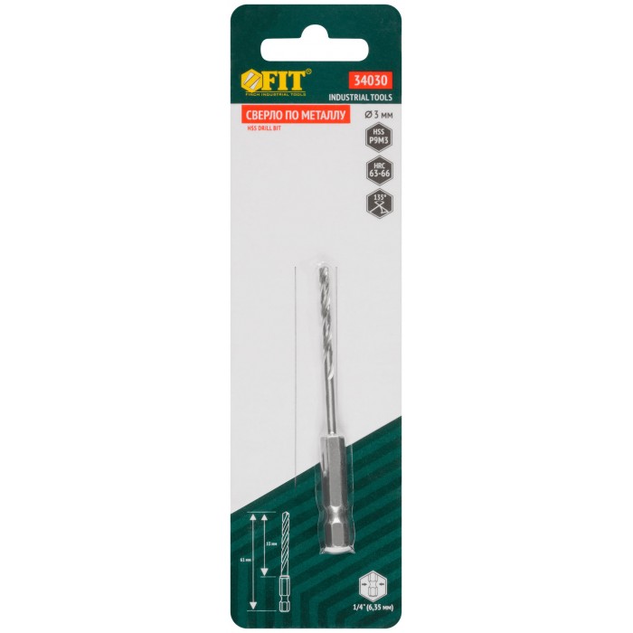 Сверло HSS по металлу,полированное, U-хвостовик под биту, инд.упаковка 3,0 мм (34030)