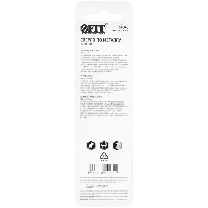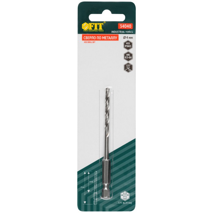 Сверло HSS по металлу,полированное, U-хвостовик под биту, инд.упаковка 4,0 мм (34040)