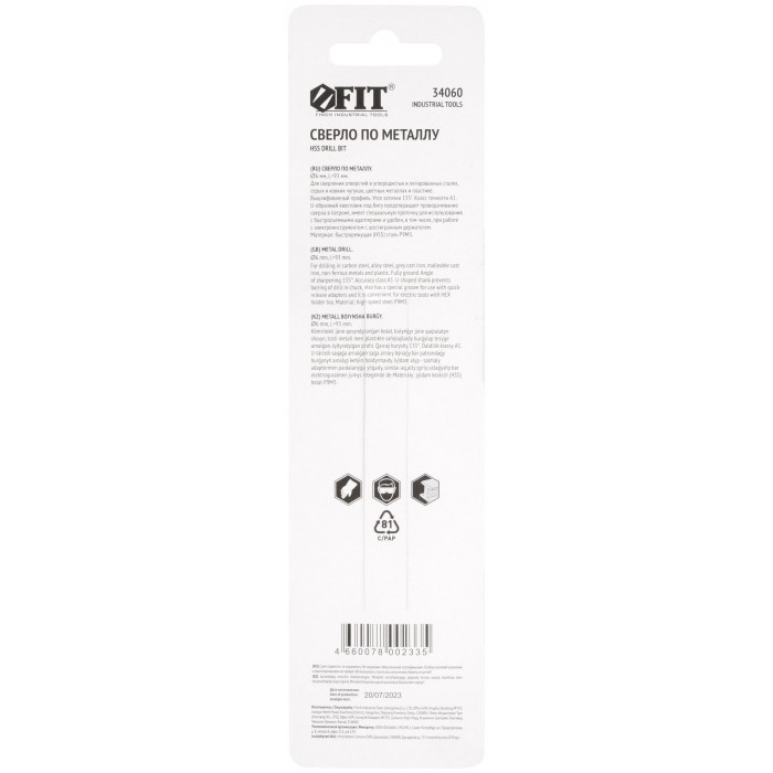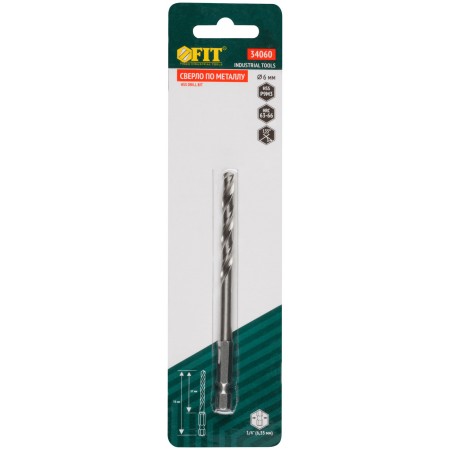 Сверло HSS по металлу,полированное, U-хвостовик под биту, инд.упаковка 6,0 мм (34060)