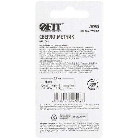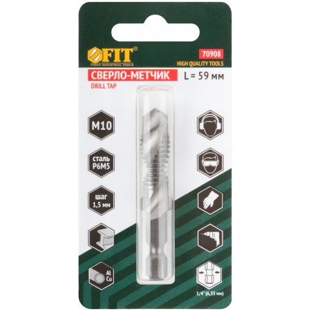 Сверло-Метчик комбинированное метрическое, быстрорежущая (HSS) сталь Р6М5, М10х1,5 мм, 26/59 мм (70908)