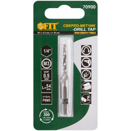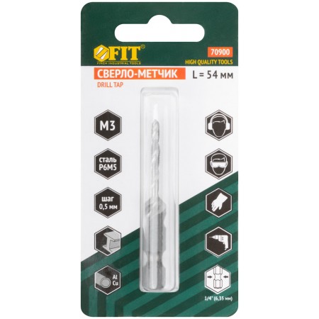 Сверло-Метчик комбинированное метрическое, быстрорежущая (HSS) сталь Р6М5, М3х0,5 мм, 16/54 мм (70900)