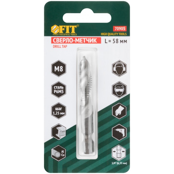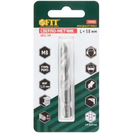 Сверло-Метчик комбинированное метрическое, быстрорежущая (HSS) сталь Р6М5, М8х1,25 мм, 24/58 мм (70905)