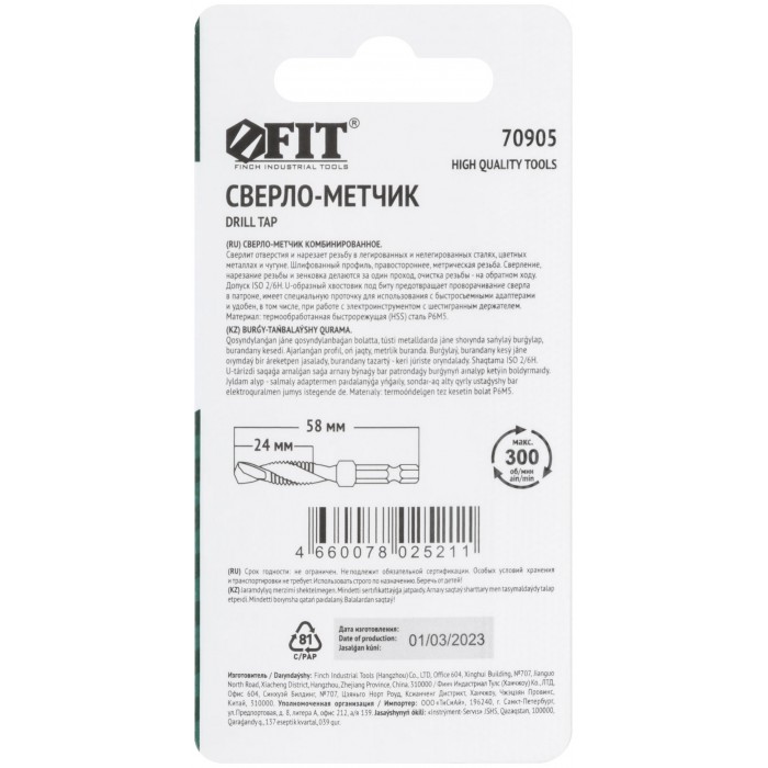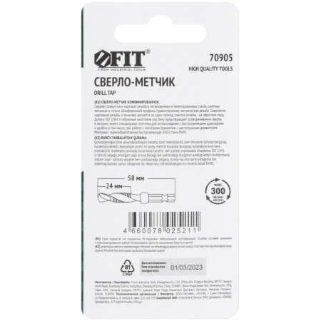Для сверления отверстий и нарезания резьбы в легированных и нелигированных сталях, цветных металлах и чугуне. Шлифованный профиль, правостороннее, метрическая резьба. Шестигранный U-образный хвостик. Материал: быстрорежущая (HSS) сталь P6M5. Упаковка : блистер.