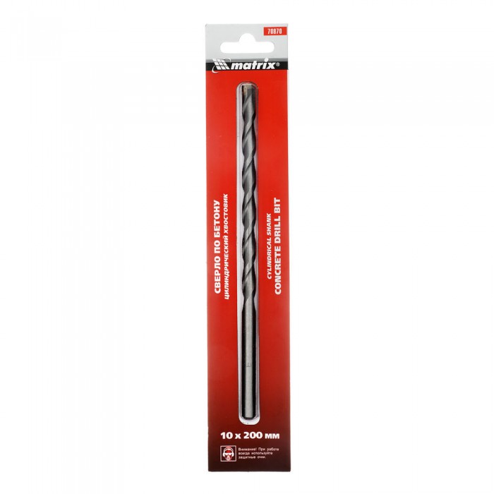 Сверло по бетону, 10 х 200 мм, цилиндрический хвостовик Matrix (70870)