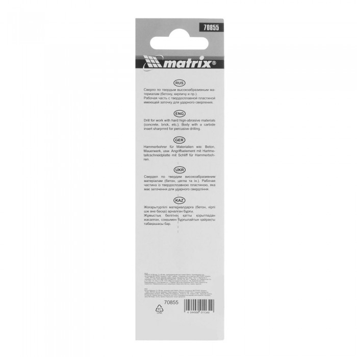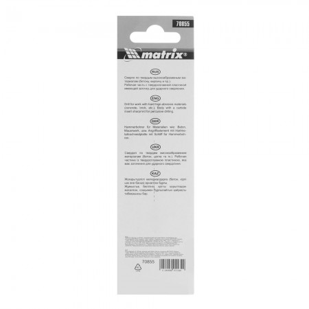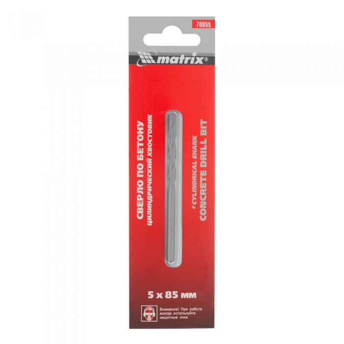 Сверло по бетону, 5 х 85 мм, цилиндрический хвостовик Matrix (70855)