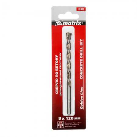 Сверло по бетону Golden Line, 8 х 120 мм цилиндрический хвостовик Matrix (70808)