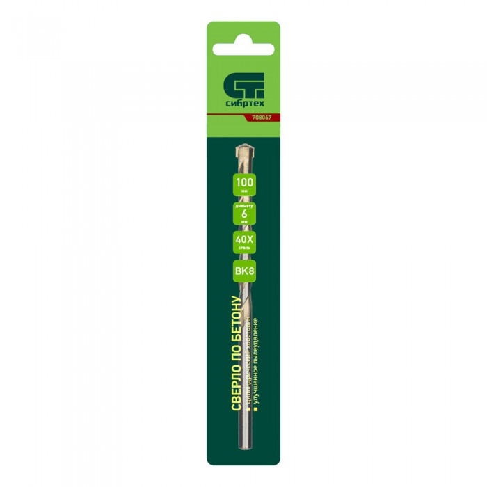 Сверло по бетону, улучшенное пылеудаление, 6 х 100 мм, цилиндрический хвостовик Сибртех (708067)