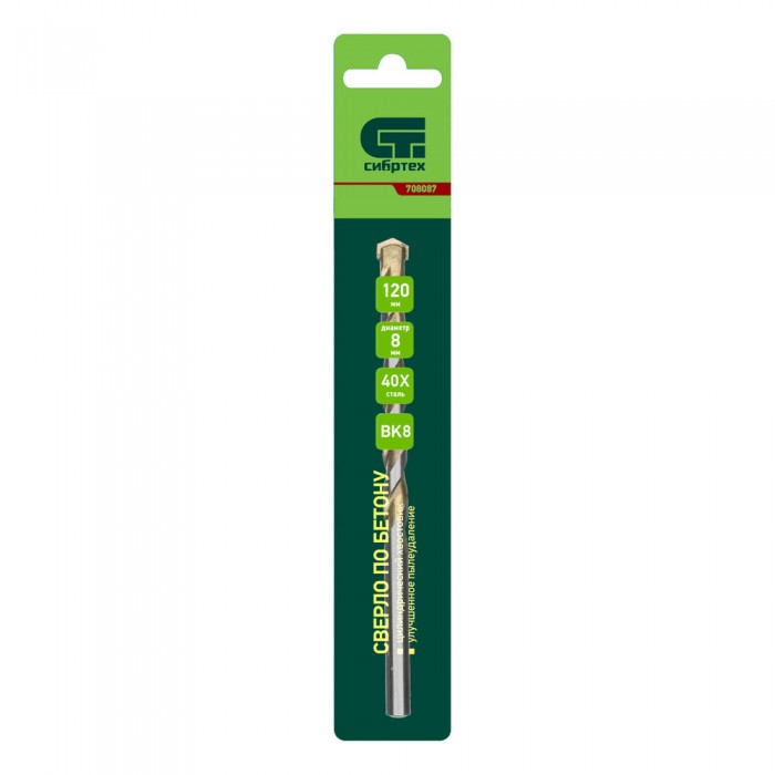 Сверло по бетону, улучшенное пылеудаление, 8 х 120 мм, цилиндрический хвостовик Сибртех (708087)