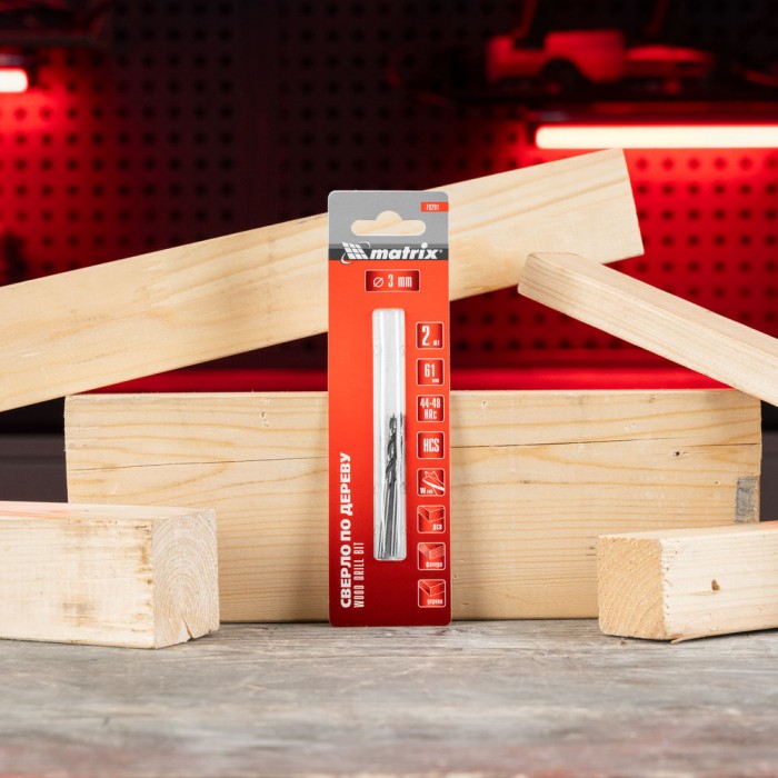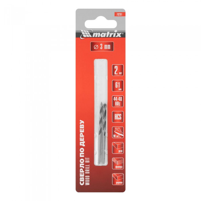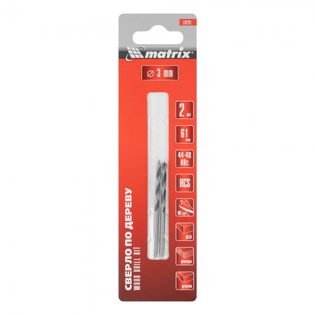 Сверло по дереву, 3 x 61 мм, 2 шт, цилиндрический хвостовик Matrix (70201)
