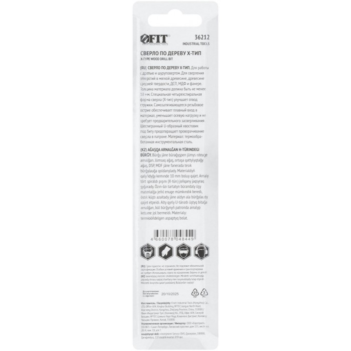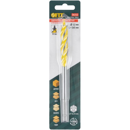 Сверло по дереву 4-х спиральное Х-тип Профи 12х165 мм (36212)